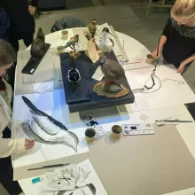 Le public, ainsi confronté à de vraies espèces, s'essaie à les dessiner avec une technique spécifique comme le fusain, l’encre de chine ou encore l'aquarelle.