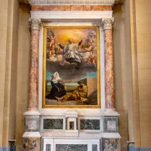 Des sculptures aux reliquaires à paperolles (ces délicates compositions de papier roulé, doré ou coloré) en passant par les tableaux monumentaux représentants notamment des scènes religieuses, les collections témoignent de la richesse picturale de la Chapelle et de la finesse du travail artisanal de l’époque.