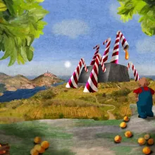 Toni est cultivateur d’oranges. Il les aime, elles sont son trésor. Jusqu’au jour où, dans la vallée, d’étranges cargos accostent. Des cargos chargés... d’oranges VERTES !