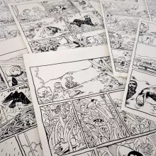 Exposition de planches de bandes dessinées d'Aurélien Cantou à la médiathèque jeunesse du Muséum de Toulouse.