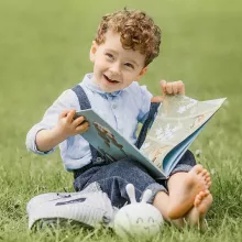 Lecture d'albums dans le jardin.