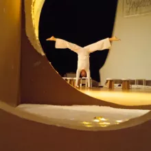 Un champ de cailloux doux à transporter, des montagnes lumineuses à escalader, des ombres en mouvement qui dessinent des histoires, un paysage en carton à construire et déconstruire pour s’y fabriquer un passage, un abri, un endroit pour lire…