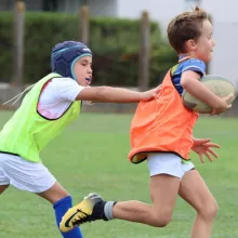 Des centaines d'enfants de 8 à 12 ans issus des clubs de rugby de la région se rencontrent au stade Michel Bendichou.